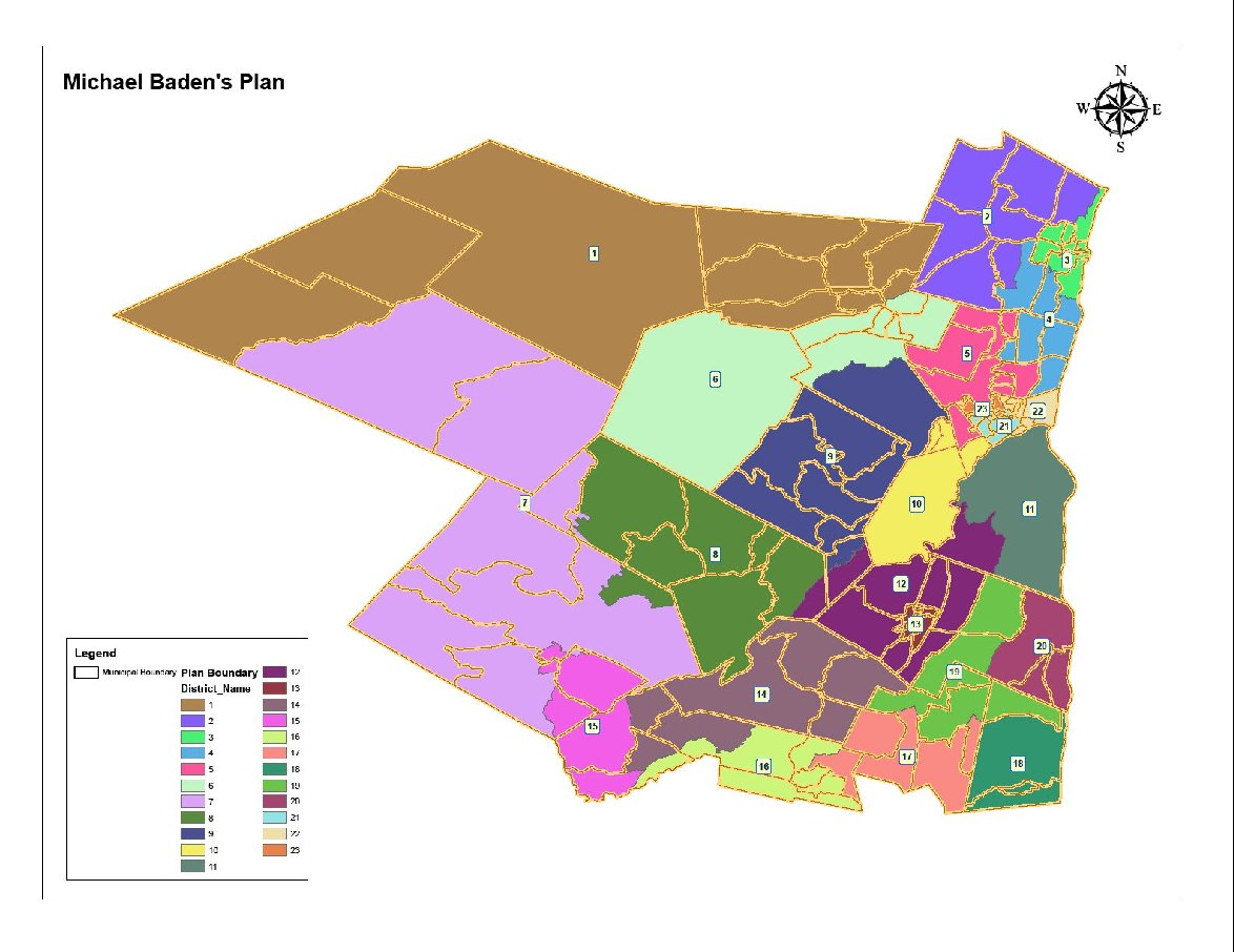I have given my reasons for not supporting your proposal and would like to reiterate my belief that ward’s boundaries should be used in determining legislative districts. These lines will remove any ambiguity that may exist. The election would be kept intact. All wards need to be reapportioned so each ward would be of equal size. The minority section of town would then have more representation. Finally, it would take 3 wards to make 1 legislative district. Nine wards just need to be divided by 3. Using the wards as a way to create Legislative disricts is fair and impartial.